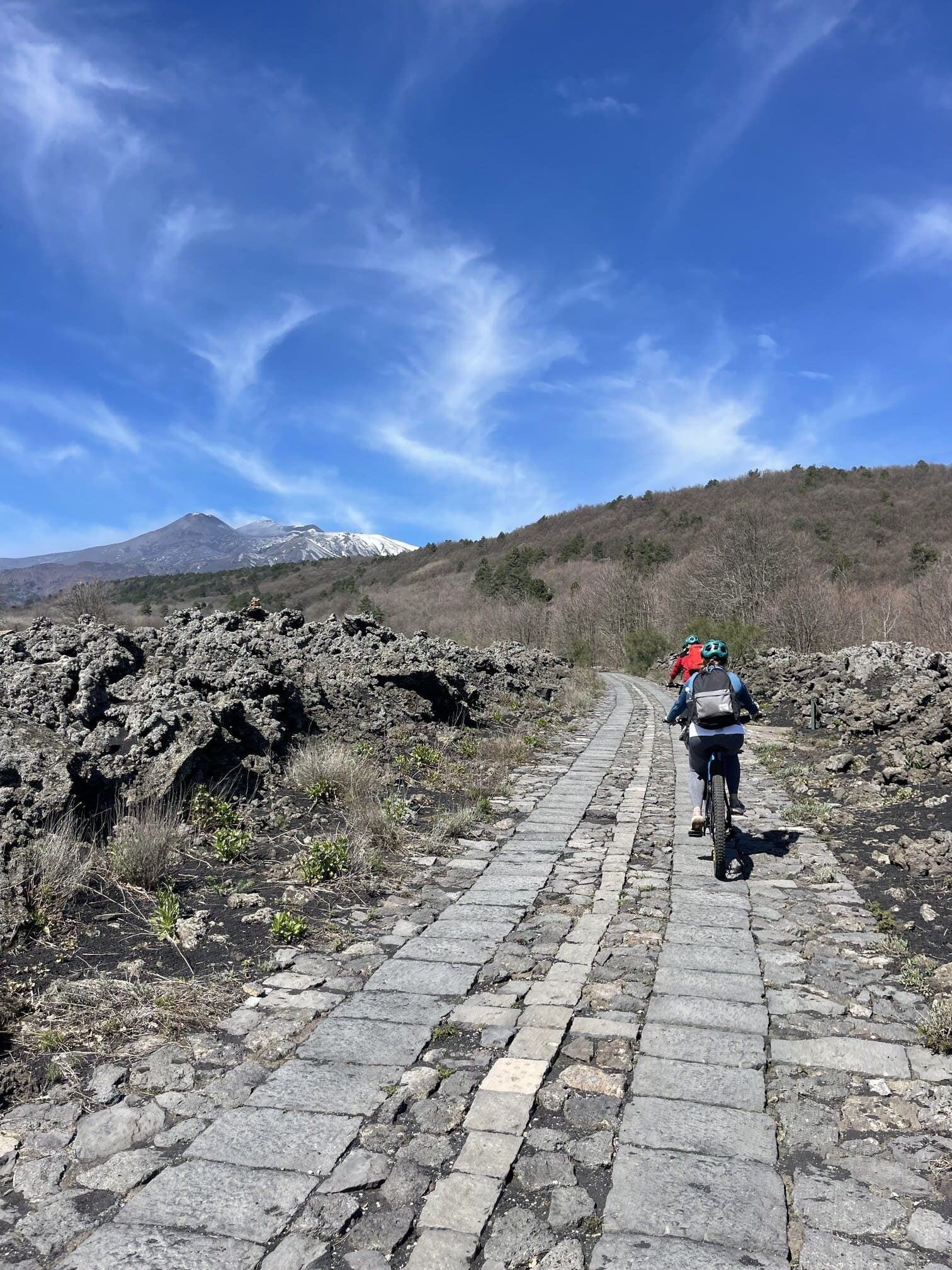 Etna East is one of the most adaptable routes we offer. The itinerary can include smoother volcanic tracks or more technical single-track sections on solidified lava, depending on the group’s experience and confidence level. The presence of multiple trail options allows the guide to adjust the distance, elevation gain and technical sections in real time, making the experience suitable for a wide range of active riders — from beginner e-bike users to MTB-oriented participants.